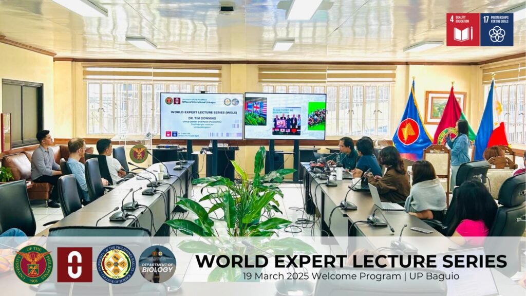 This morning, the World Experts Lecture Series (WELS) officially commenced with a warm welcome for Dr. Tim Downing, Group Leader & Head of Genomics at The Pirbright Institute, UK. The UP Baguio Department of Biology, in collaboration with the UP Office of International Linkages (UP OIL) Program, is honored to host Dr. Downing for this enriching and intellectually stimulating series.