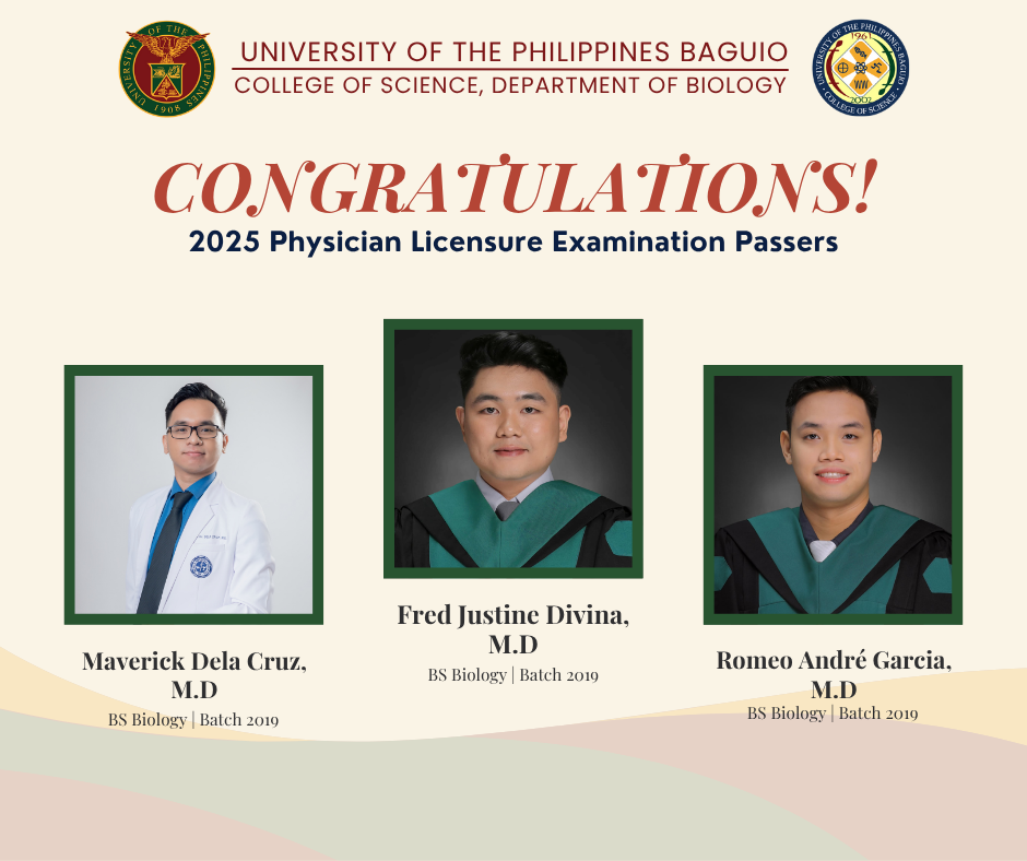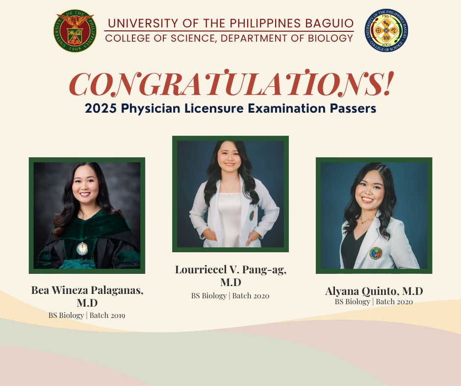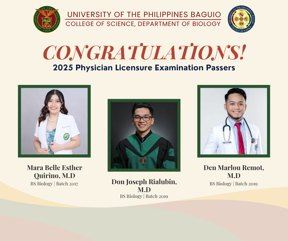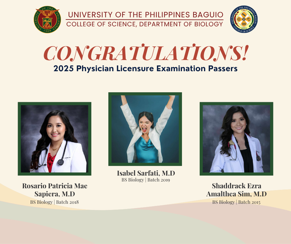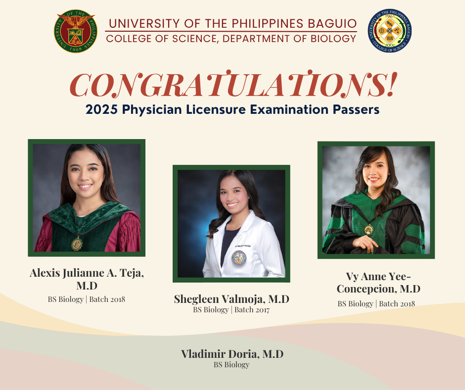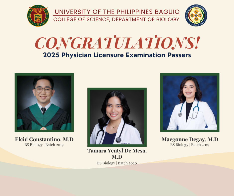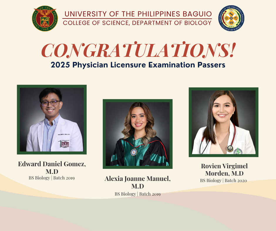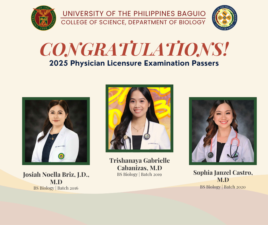 The Department of Biology congratulates our hardworking alumni who have earned their medical licenses in the recent Physician Licensure Examination released last October 16, 2025.